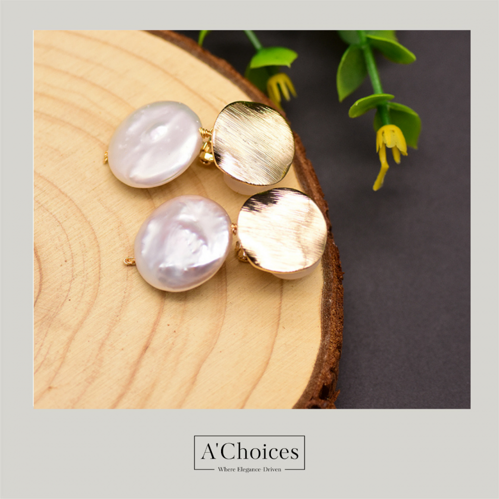أقراط مصنوعة يدوياً من الفضة والنحاس المطلي بالذهب عيار 18 مع اللؤلؤ الزراعي