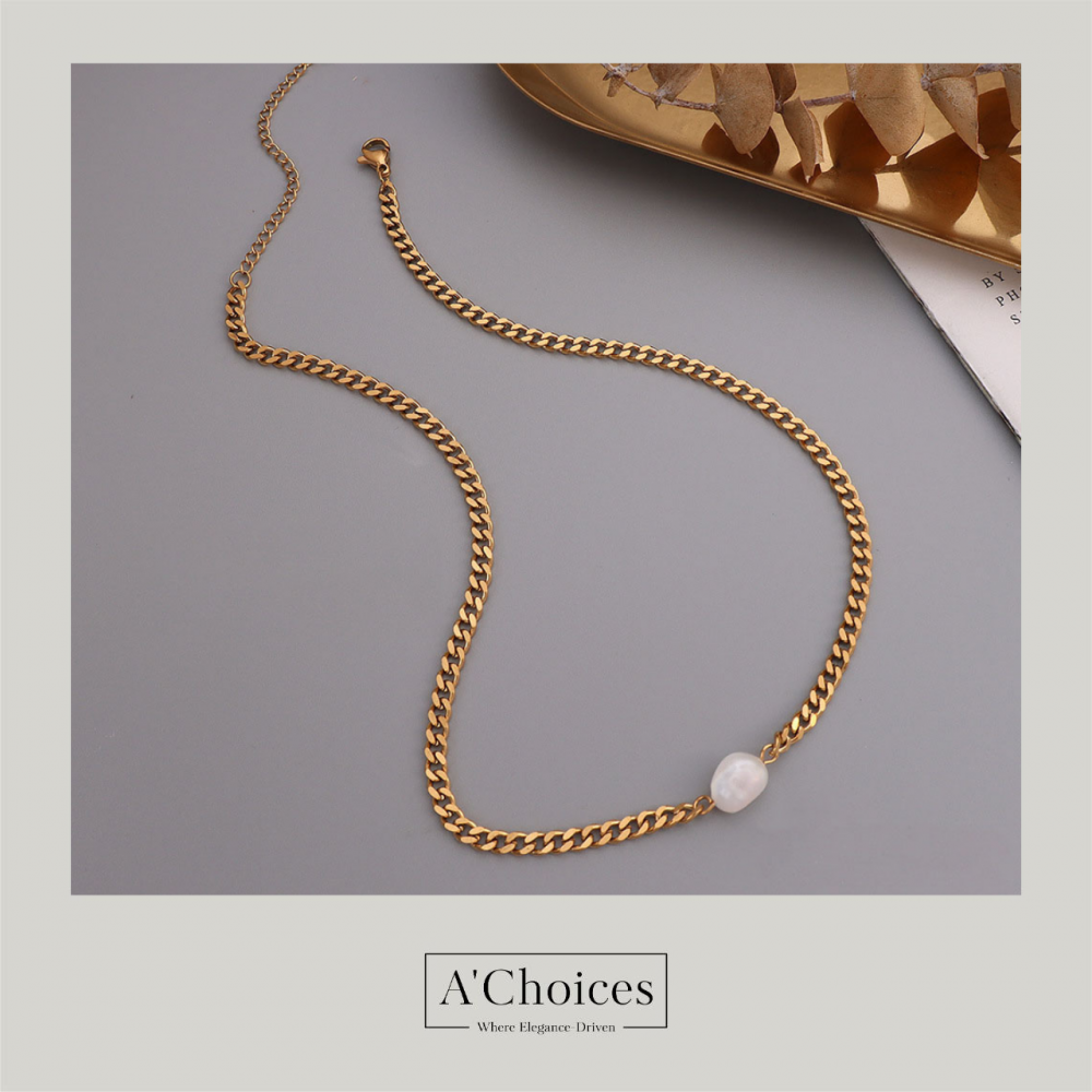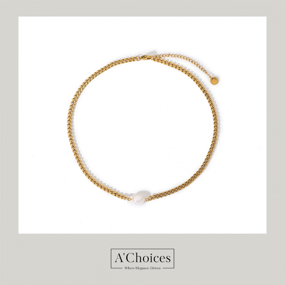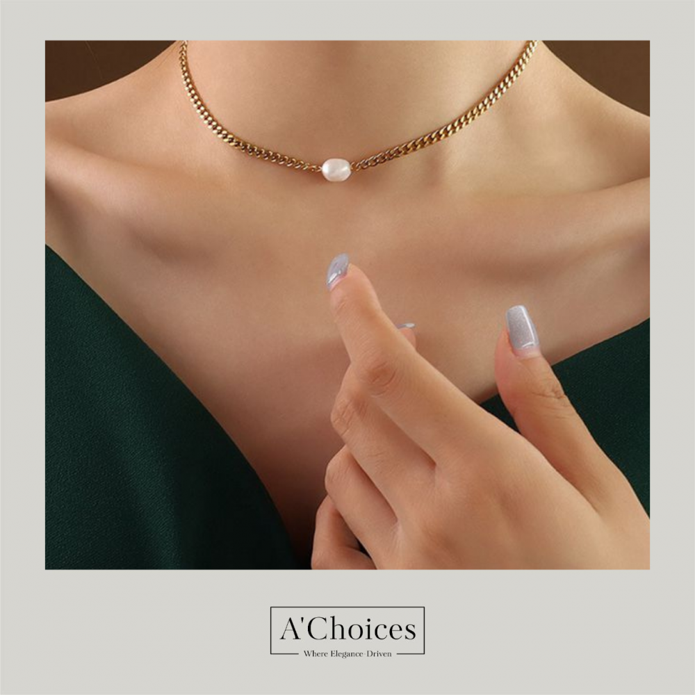 تشوكر مصنوع من الفولاذ المطلي بالذهب عيار 18 مع حبة لؤلؤ