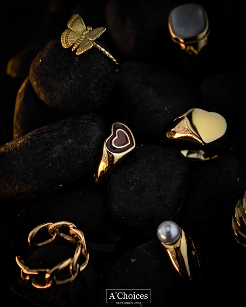 خاتم على شكل فراشة مطلي بالذهب قابل للتعديل