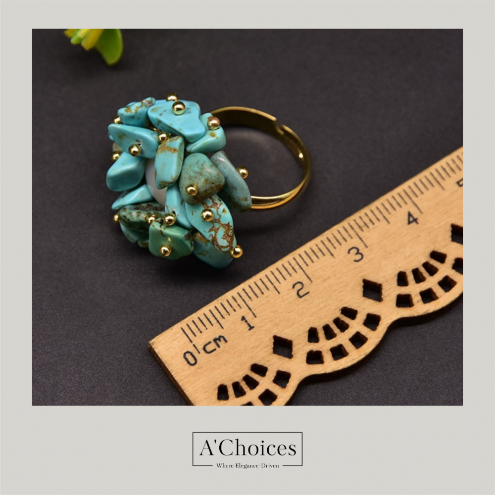 خاتم لولو مطلي بالذهب مع الكريستال الأخضر