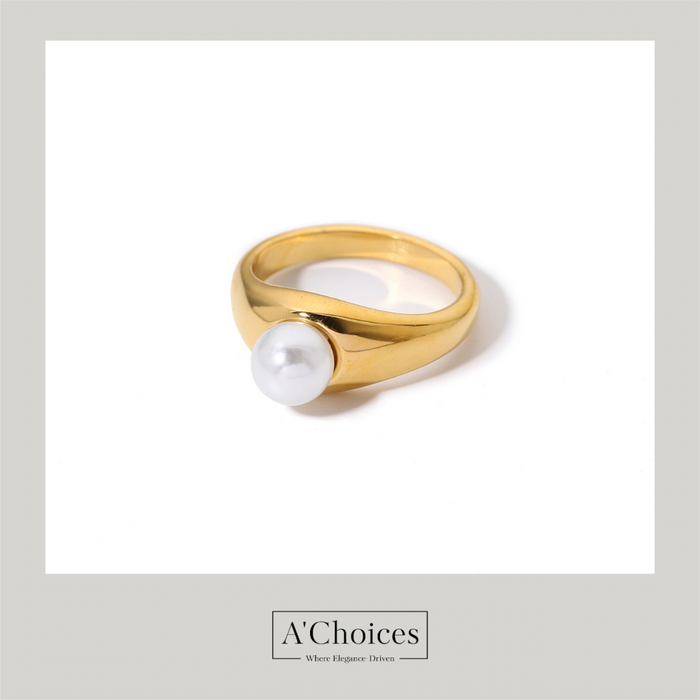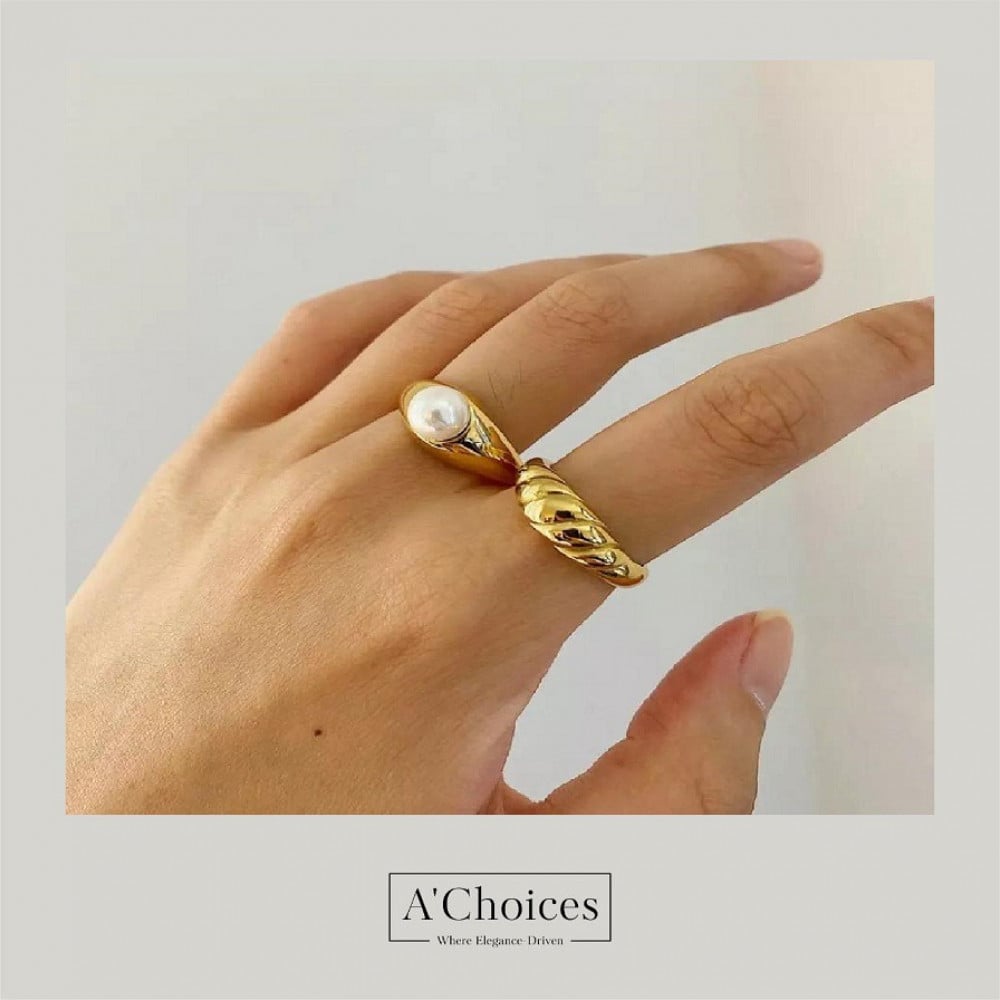 خاتم مطلي بالذهب 18 مع لؤلؤ