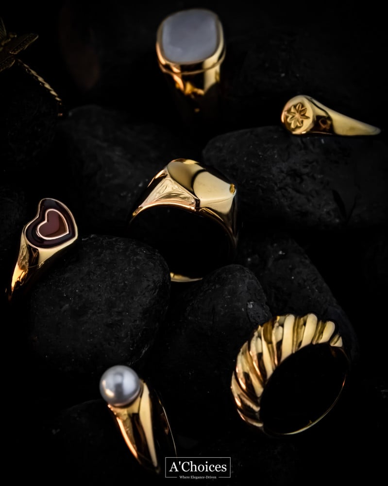 خاتم مطلي بالذهب مع الأحجار الملونة