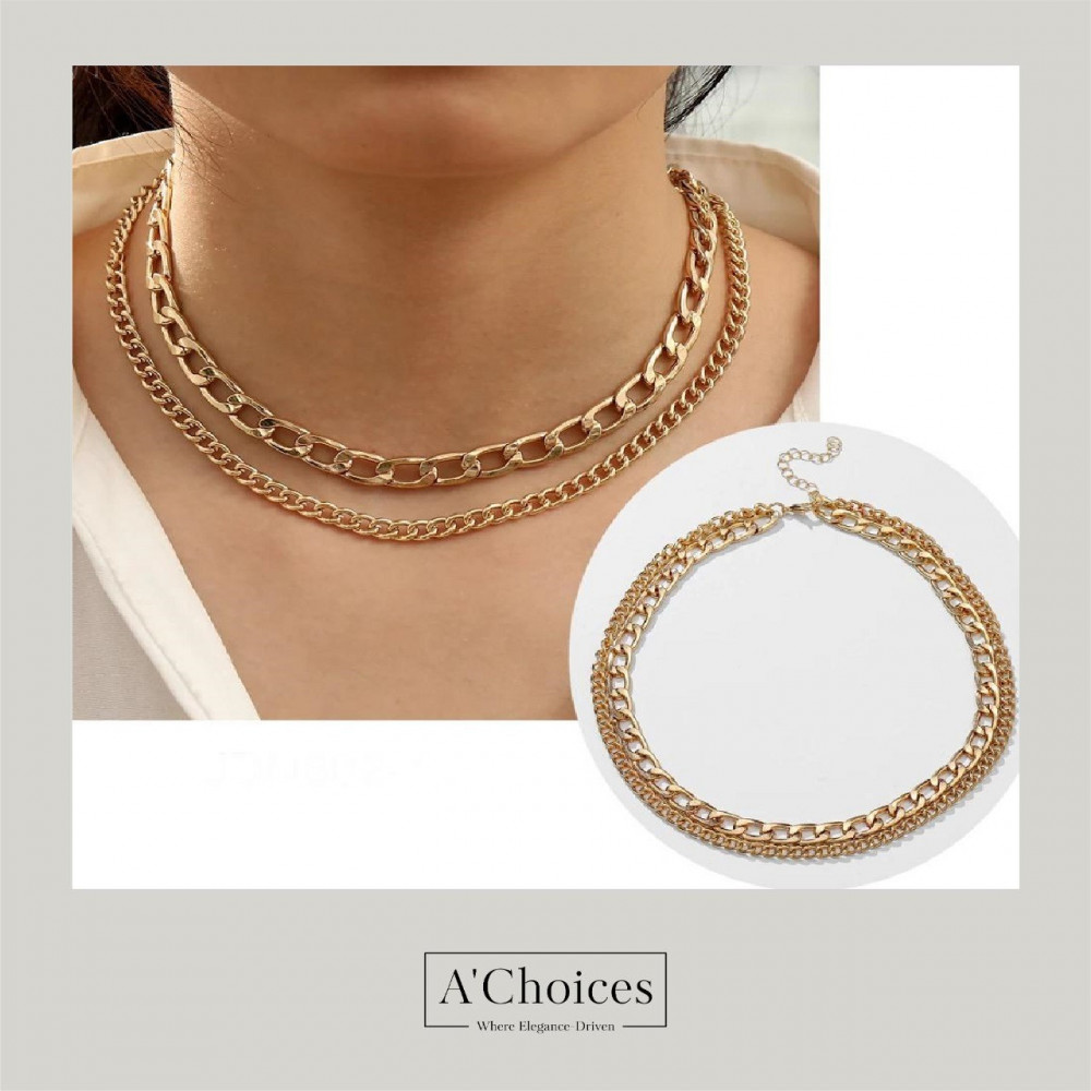 سلسال بطبقتين يمكن التحكم بالطول متوفر بلونين الذهبي والفضي