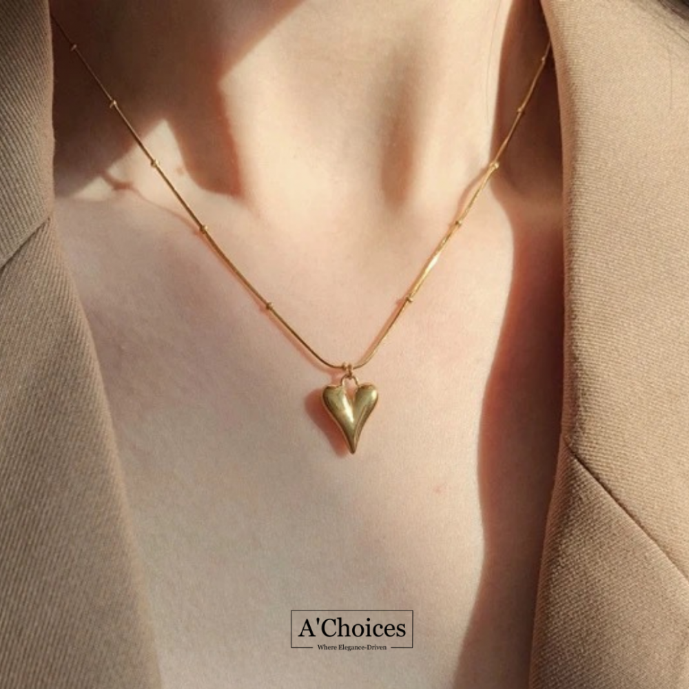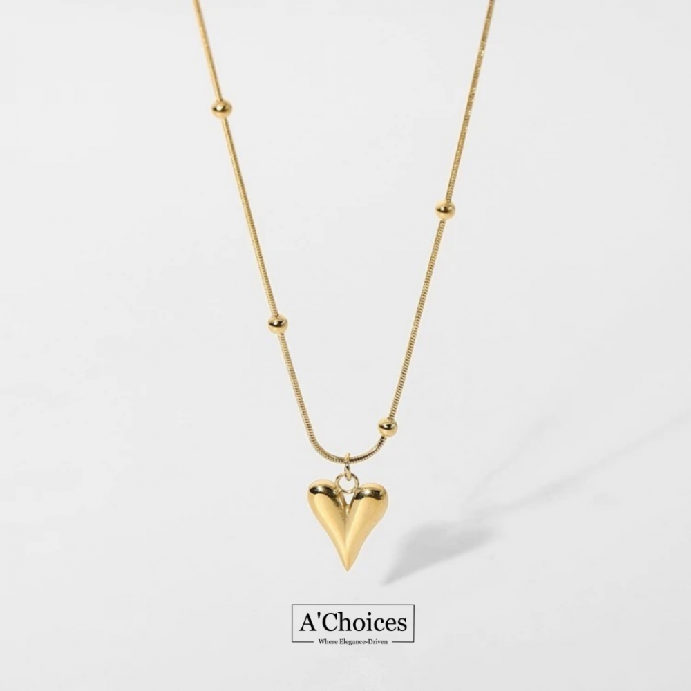 سلسال علي شكل قلب مصنوع من الستانلس ستيل المطلي بالذهب ضد الماء ومقاوم للصدأ
