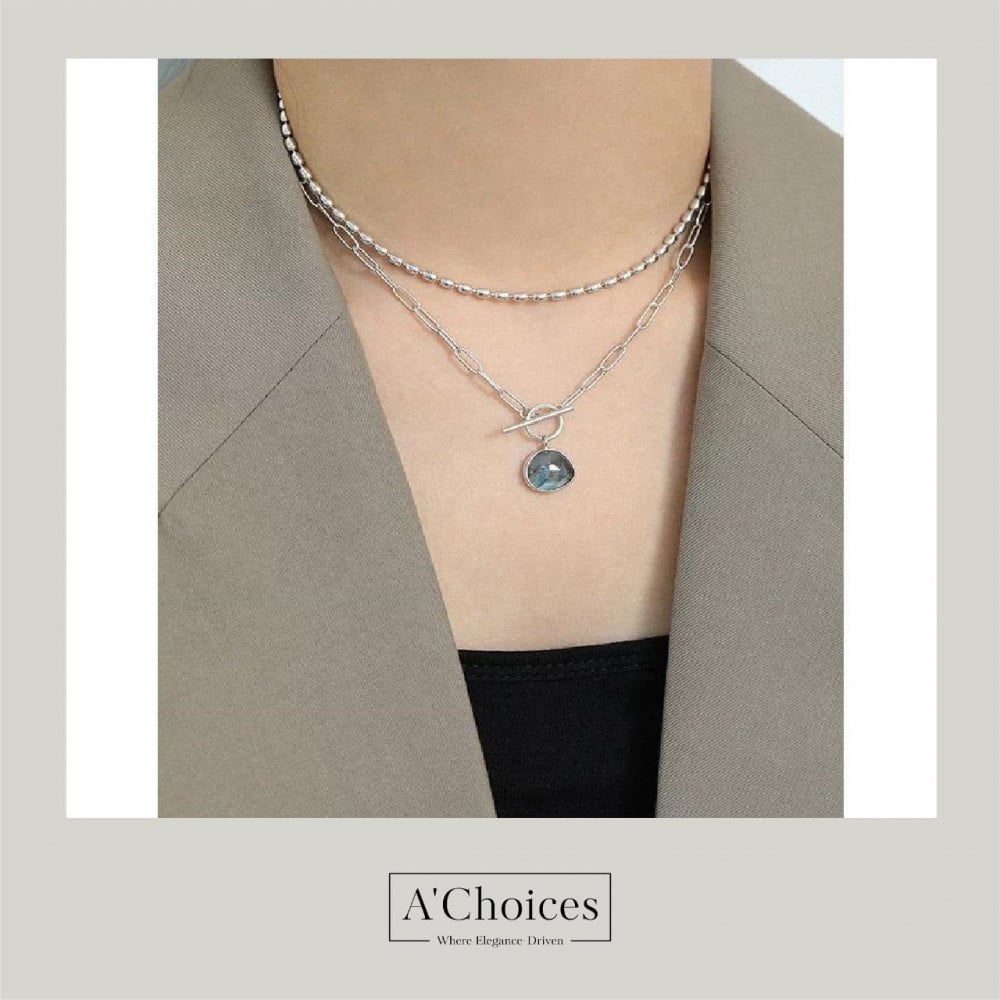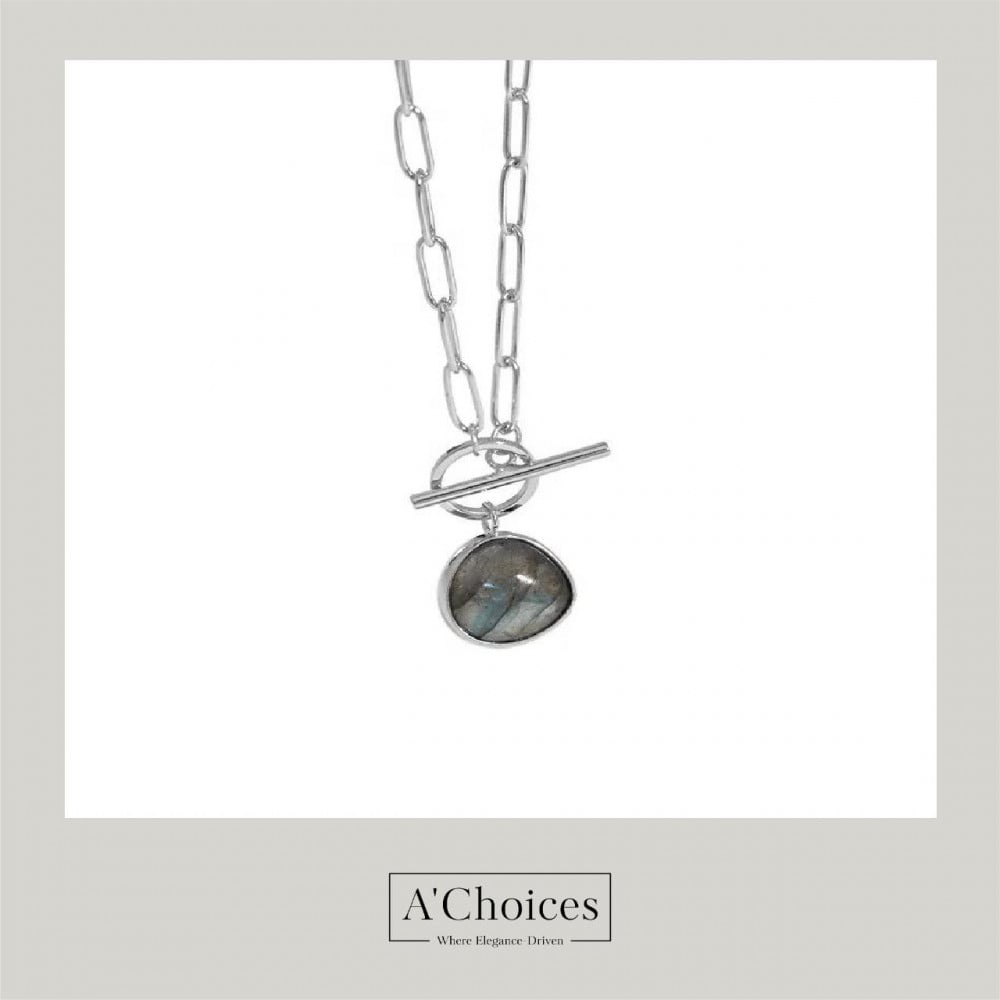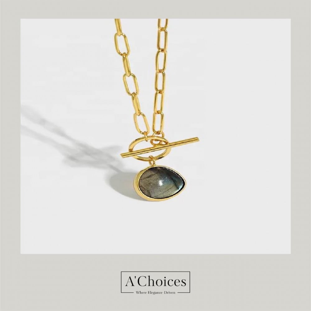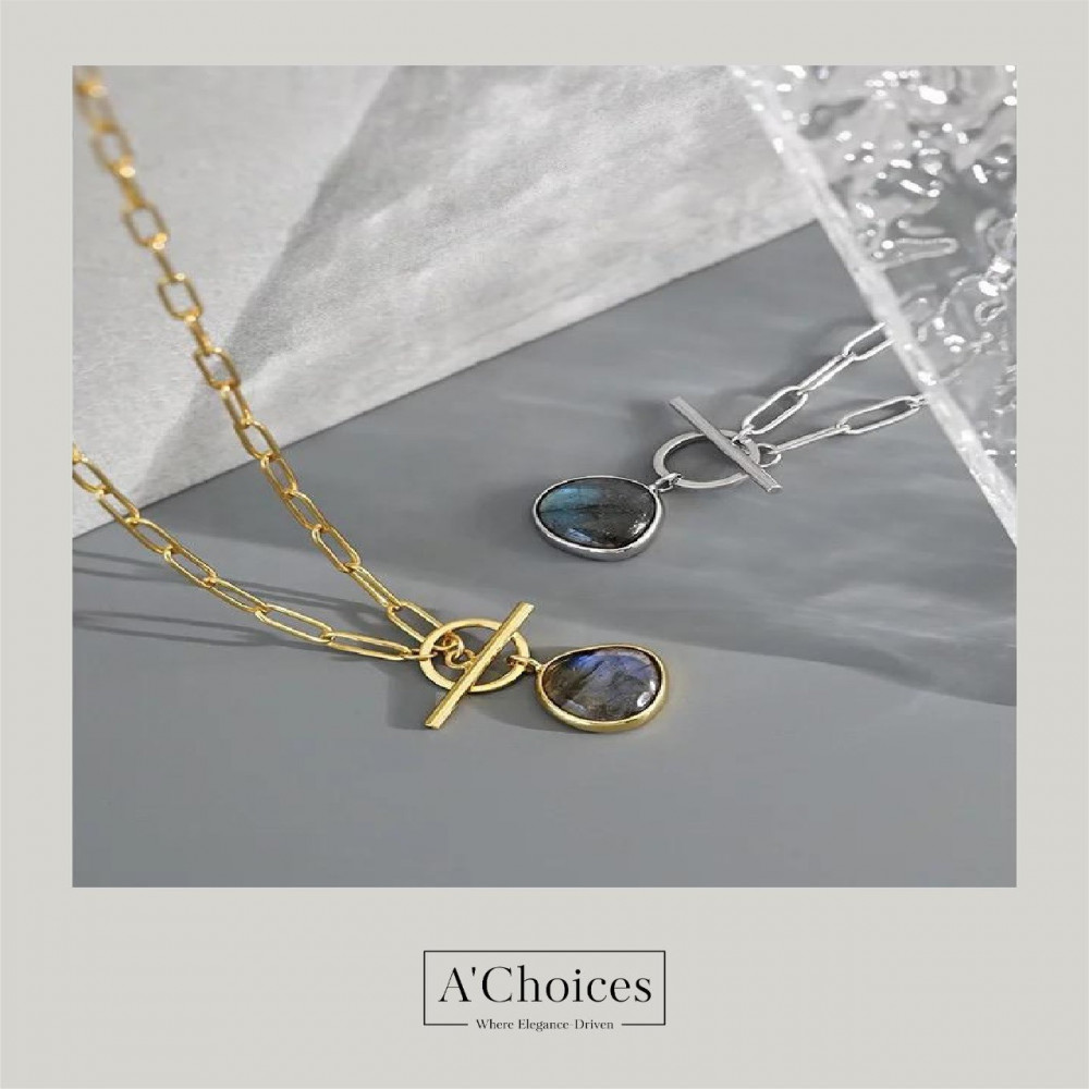 سلسال مصنوع من الفضة عيار 925 بحجر اللابرادوريت بلونين الذهبي والفضي