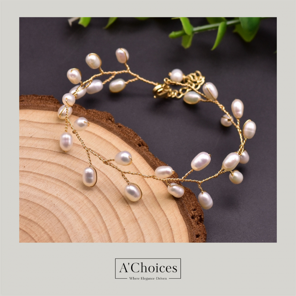 سوار مصنوع يدوياً من النحاس المطلي بالذهب عيار 18 مع اللؤلؤ الزراعي