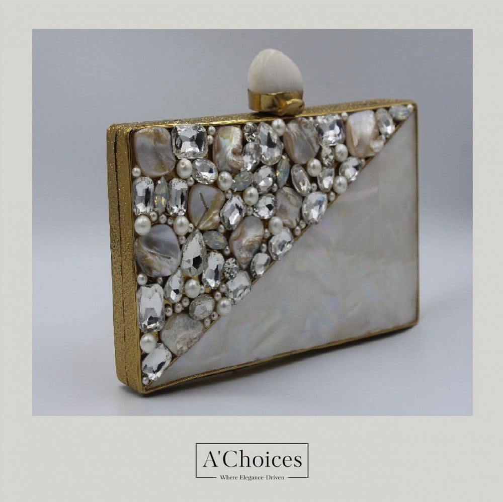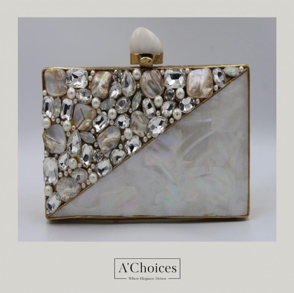 شنطة بنات مصنوعة يدوياً من المعدن والصدف واللؤلؤ الصناعي والكرستال مع سلسلة ذهبية وبطانة داخلية قماشية ، تُعد شنطة بنات من الأكسسوارات الضرورية التي يحتاجها كل امرأة لإكمال إطلالتها بالشكل الأمثل ،تتميز شنطة بنات بالعديد من المميزات التي تجعلها اختيارًا مثاليًا للاستخدام في المناسبات المختلفة